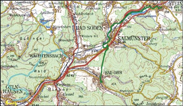 Die vierte Etappe führt vom Untermarkt in Gelnhausen zur Sporthalle der Gesamtschule in Wächtersbach.